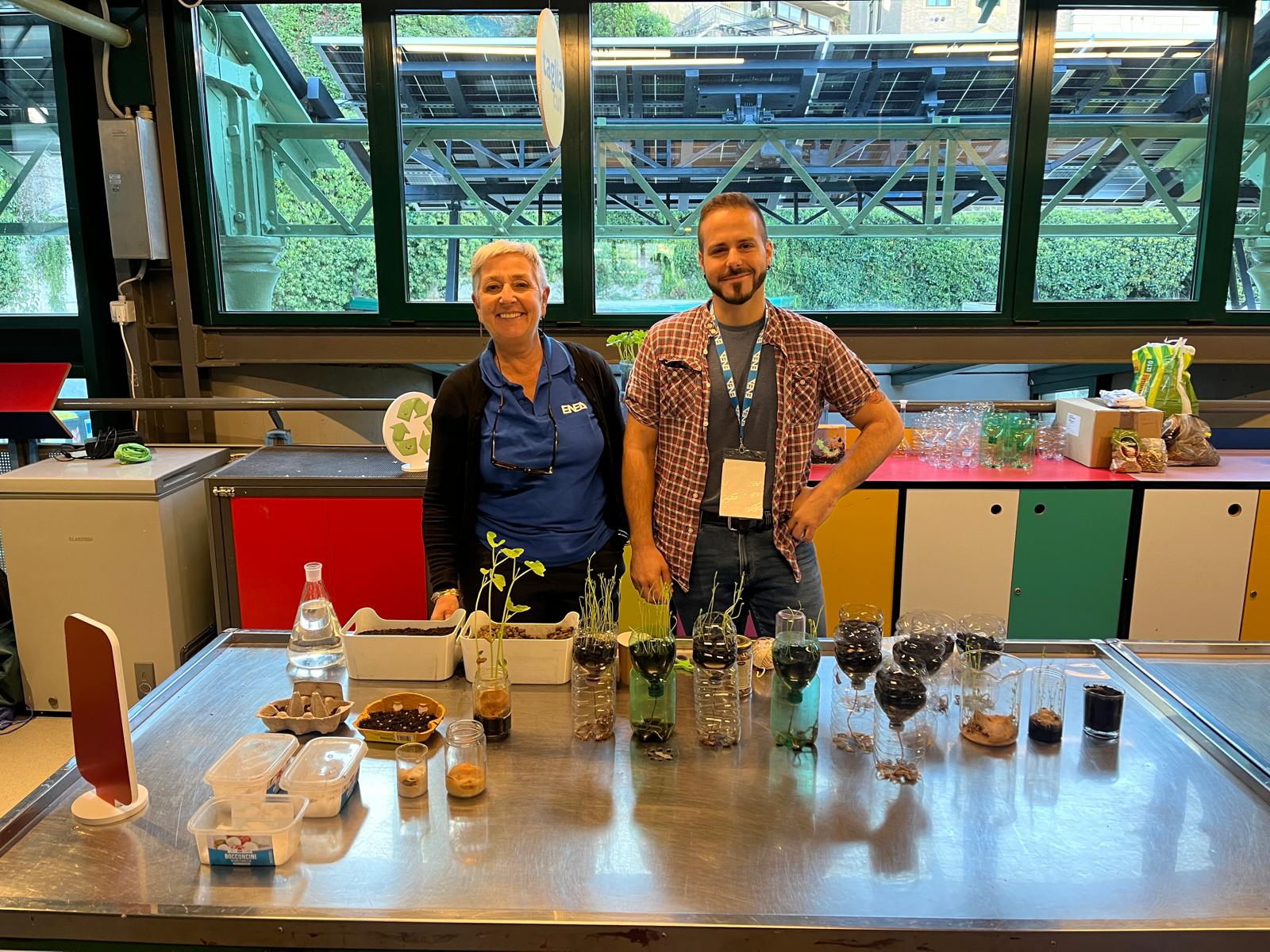 I Ricercatori dell'ENEA, Raffaele Sasso e Sergio Musmeci, spiegano ai visitatori attività di ricerca
